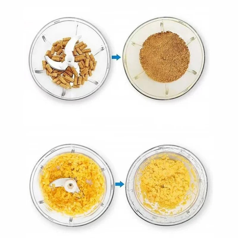 - The Mini Processor - Manual Food Shredder 3 Blades is a complete kitchen must-have! It quickly and easily shreds vegetables, cheese, nuts and any other food that needs to be chopped with its three triangular blades. Thanks to its ergonomic design and sharp stainless steel blades, it's not only powerful but also easy to use with minimal effort. The upper portion of the food chopper is made out of food grade plastic for safety and hygiene. The mini processor also comes with a removable container for presenting your prepared ingredients in the form of small pieces or even as a paste. Additionally, this product is easy to clean, can be conveniently stored when not in use and is available at an affordable price – making it perfect for everyone who wants to have an effortless cooking experience.